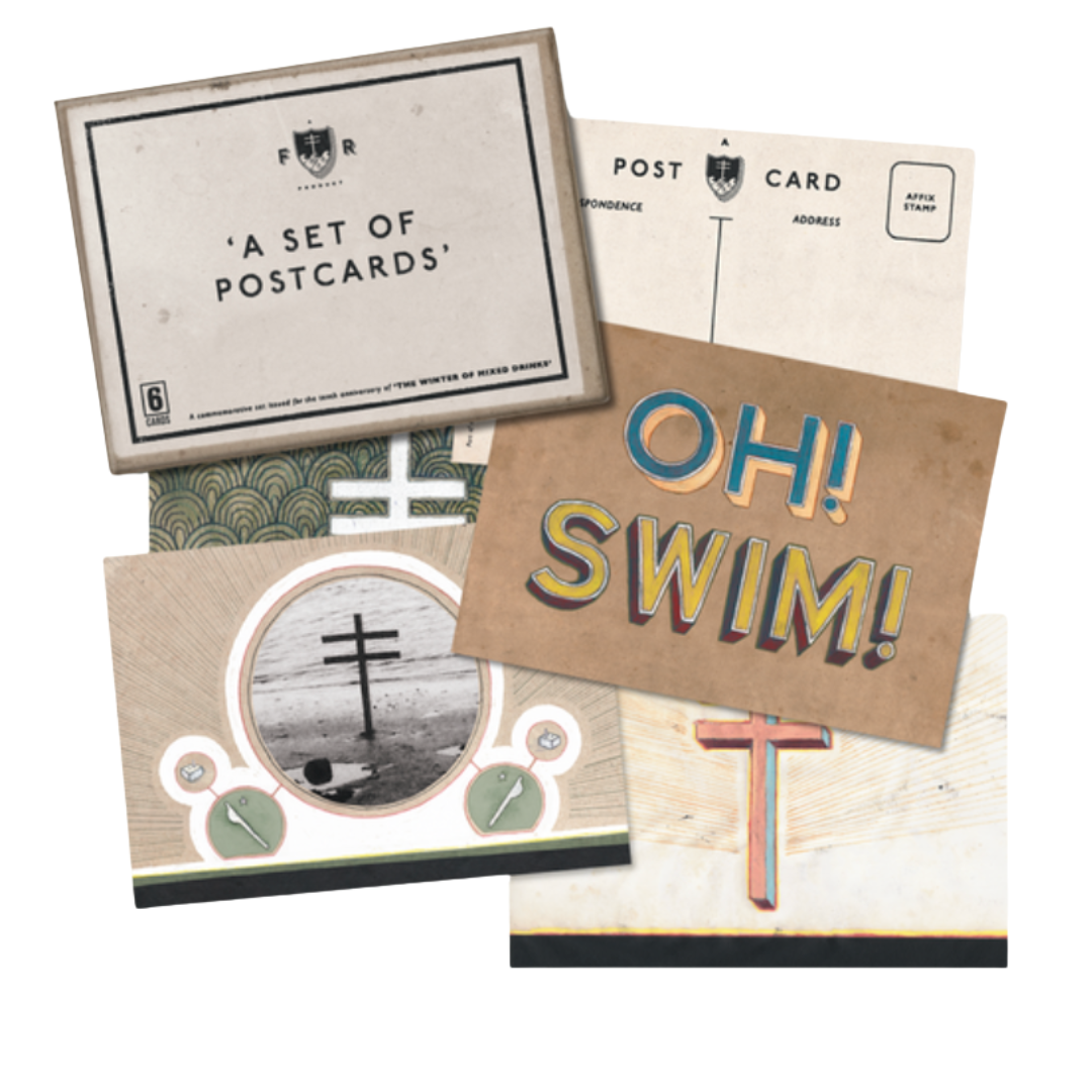Pack of postcards featuring Winter of Mixed Drinks artwork. 148mm x 105mm (open 148mm x 210mm).